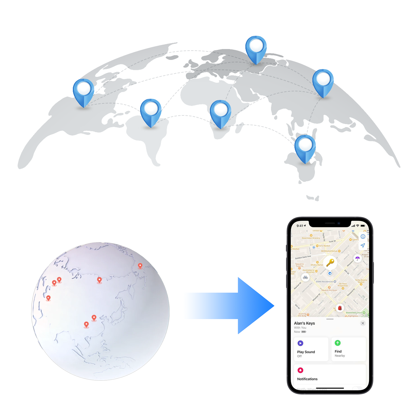 • Global Tracking: Pinpoint your items anywhere in the world, with accuracy down to the meter.