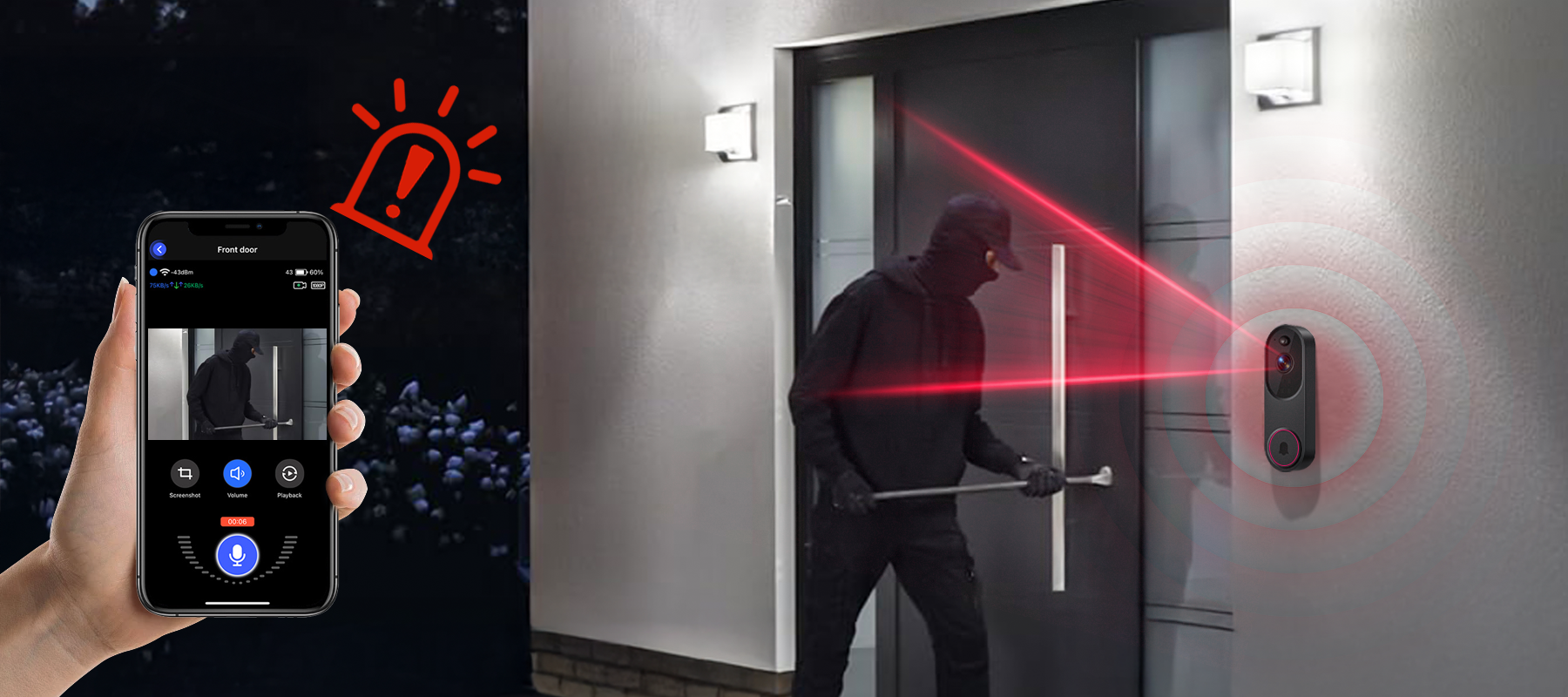 - Remote Convenience:View and communicate outside your door anytime, anywhere via your phone, bringing convenience to your daily life.